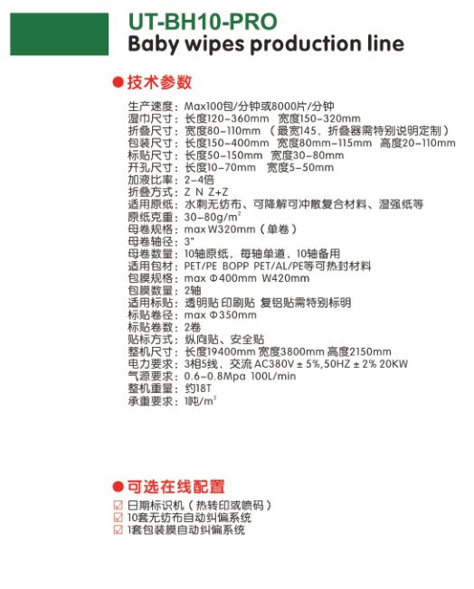 UT-BH10-PRO婴儿湿巾生产线